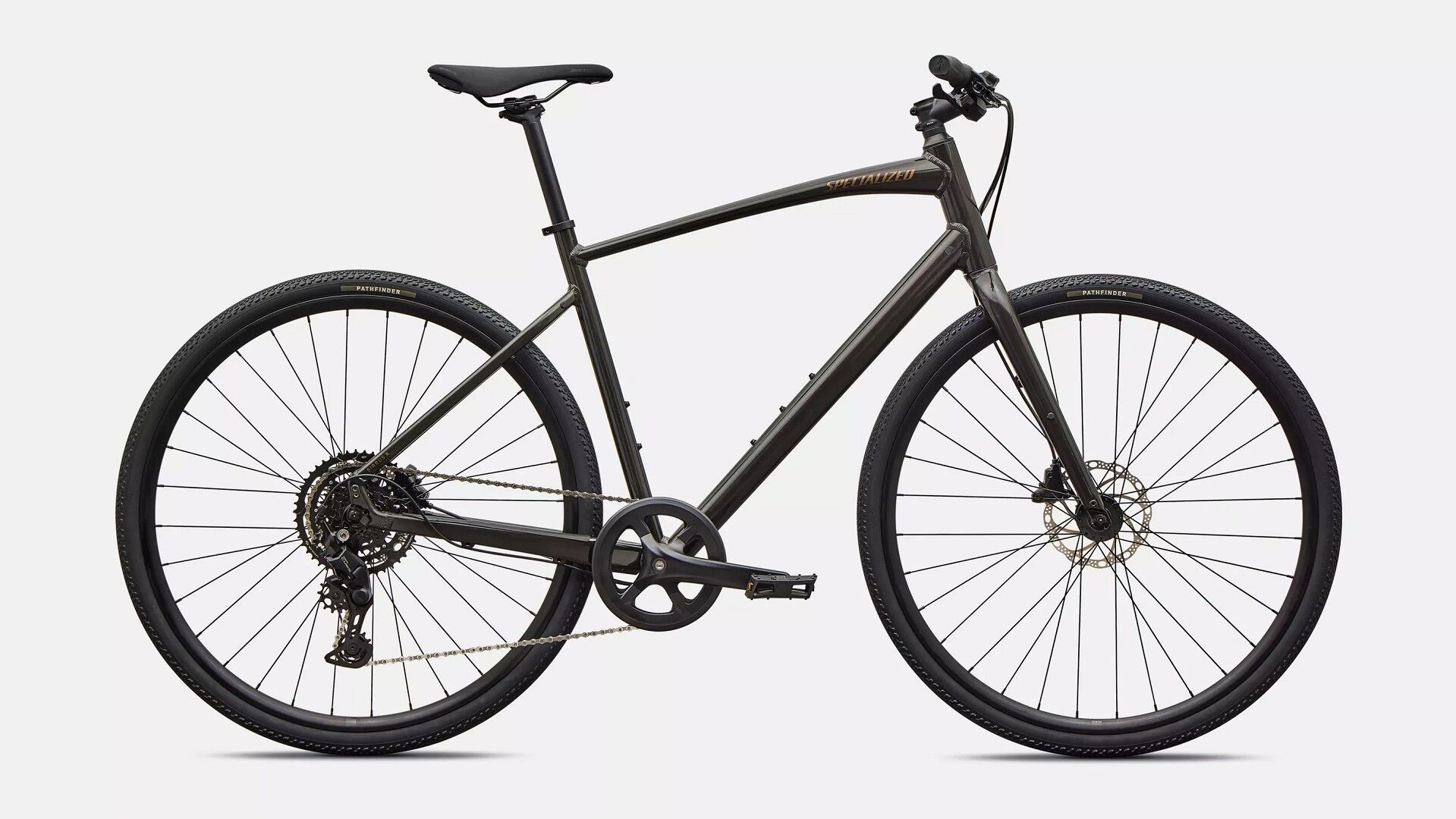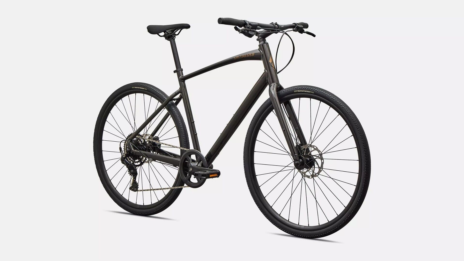 Specialized A1 Premium Aluminum, Fitness Geometry, butted tubing, internal cable routing, flat-mount disc, quick-release, Plug + Play rack/fender mounts